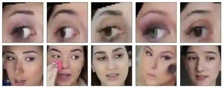 如上图,如果仅直接比较图像像素,人物的眼睛都高度相似,但仔细注意会发现,虽然人物的眼影、光线和视线方向一致,但她们的眼睛颜色和面部肤色却各不相同。