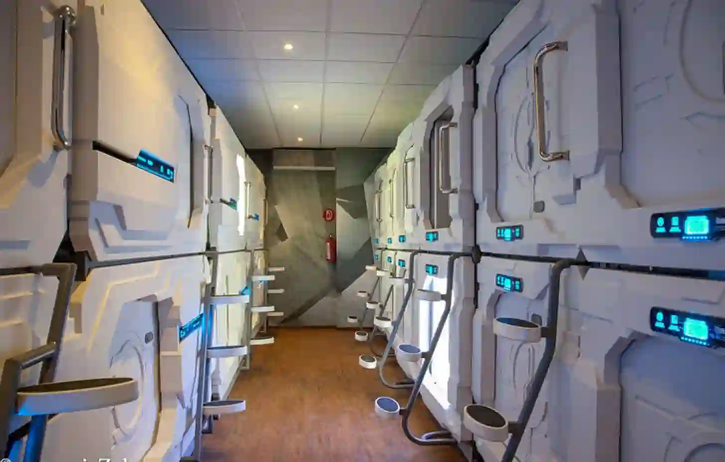 当然,用于小睡或短暂过夜的紧凑居住舱绝非新鲜事物,日本是这一理念的先驱,一些胶囊旅馆开设在了人口密集的都会区、夜店区域以及火车站旁。在亚洲的许多例子中,睡眠豆荚即简化到仅剩核心功能(一个床垫和一点别的东西)的旅馆,设计直接取法自木乃伊石棺。