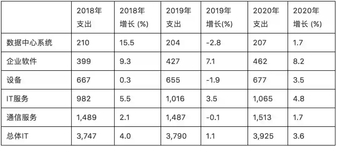 据Gartner公司的最新预测显示,2019年全球IT支出预计将达到3.79万亿美元,比2018年增长1.1%。