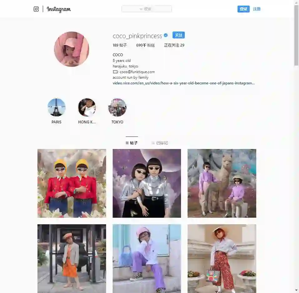 Instagram上,有大把靠着美好颜值出道的小朋友,7岁的日本女孩Coco因为酷酷的外表早早和Burberry、Gucci、Gentle Monster等品牌有过合作;双胞胎Taytum和Oakley在有280万粉丝,据估计,单条广告价格在1.5-2.5万美元(约合10-17万元)之间。
