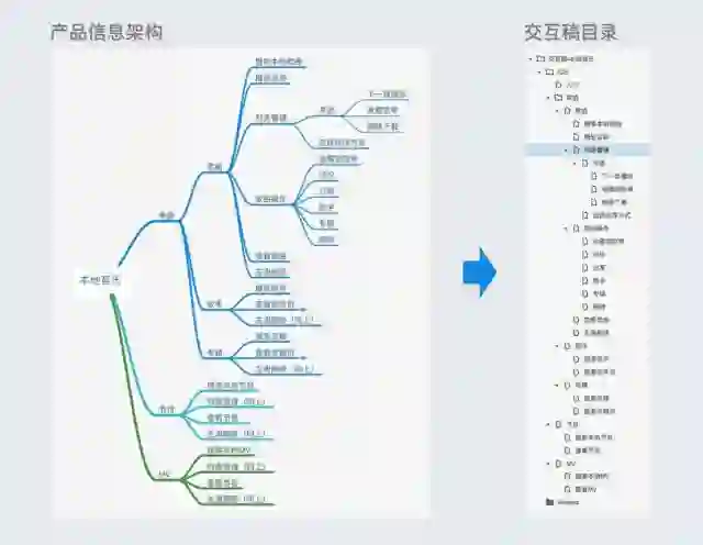 一般我们会在信息结构部分展示产品的内容/功能都有什么,它们是如何组织起来的,页面层级又是如何分布的等等。交互文档的结构(原型设计部分),应该根据产品的信息结构搭建。