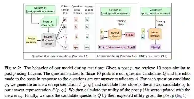 提问(inquiry)是沟通的基础。除非能提出问题,机器无法有效地与人类合作。在这项工作中,我们建立了一个神经网络模型来排序澄清性问题。我们的模型受到完美信息期望值(expected value of perfect information)的启发:一个问题好不好在于其预期答案是否有用。我们使用来自StackExchange的数据来研究这个问题。StackExchange是一个丰富的在线资源,人们在上面提问一些澄清式的问题,以便更好地为原始的帖子提供帮助。我们创建一个由大约77k帖子组成的数据集,其中每个帖子包含一个问题和回答。我们在500个样本的数据集上对我们的模型进行了评估,并与人类专家的判断进行对比,证明了模型在控制基线上得到重大改进。