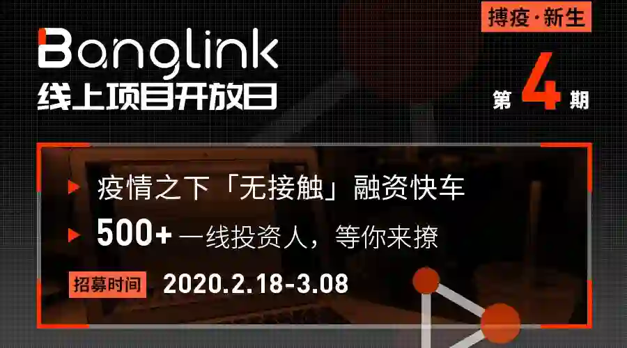 本期,我们将在活动当天,于Bang Link 专属活动页面,限时开放50个优质项目,并邀请500+创业邦认证投资人在线查看项目,对感兴趣的项目进行联系与约见。创业者和投资人只需线上报名,通过审核后,即可参与本次Bang Link 线上项目开放日活动。