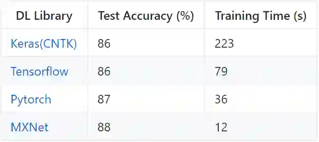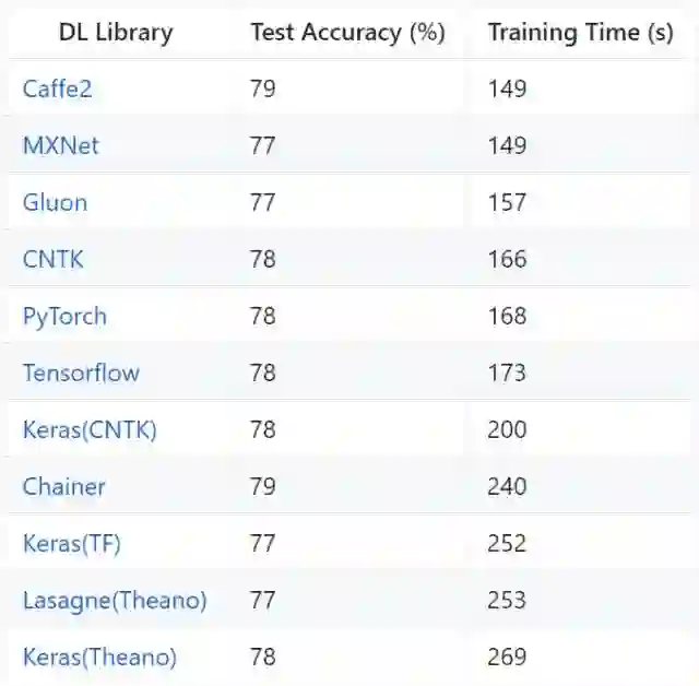 [ 导读 ]近日,Ilia Karmanov 在 Medium 发表了一篇题为《Neural Net in 10 Frameworks (Lessons Learned)》的文章,其内容源自一个 GitHub 项目,其中作者通过构建同一个神经网络,对比了当前最流行的 10 种深度学习框架,其中 Caffe2 和 MXNet 在准确度和训练时长上处于领先位置。该项目甚至还得到了 FAIR 研究者、各大框架创始人(比如贾扬清)的支持。