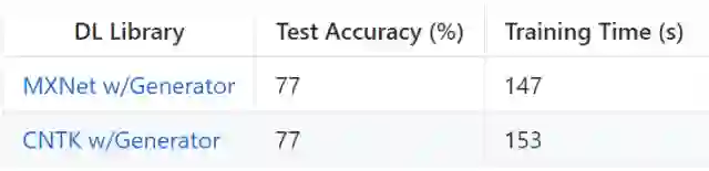 1. 为方便对比,上文中的实例(除了 Keras)使用同等水平的 API 和同样的生成器函数。我在 MXNet 和 CNTK 的实验中使用了更高水平的 API,在该 API 上使用框架的训练生成器函数。该实例中的速度提升几乎微不足道,原因在于整个数据集作为 NumPy 数组在 RAM 中加载,每个 epoch 所做的唯一的处理是 shuffle。我怀疑该框架的生成器也在异步执行 shuffle 操作。奇怪的是,似乎框架在一个批次水平上进行 shuffle,而不是在观察层面上,因此测试准确率稍稍降低(至少在 10 epoch 之后)。在框架运行时进行的 IO 活动、预处理和数据增强的场景中,自定义生成器对性能的影响更大。