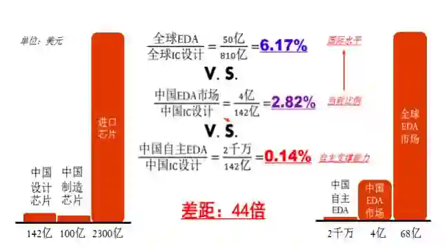 国内EDA(电子设计自动化)市场发展较为迅速,但本土EDA工具的市场严重落后。从国际上看,EDA与IC设计产值的比例大概在6%,而国内EDA/IC设计的比值只有不到3%,本土EDA的比值更低,只有0.14%,相差40多倍。本土EDA工具需要更快更高效的发展,才能有效支撑我国整个集成电路设计的发展。