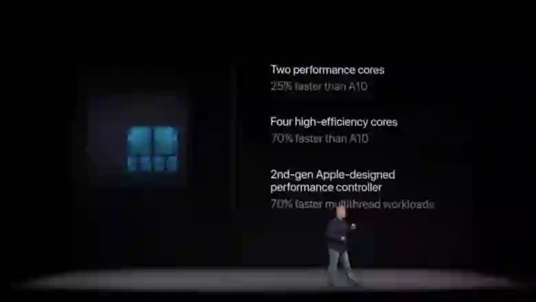 苹果自研的A11 Bionic(仿生)芯片,搭载了64位ARMv8-A架构的6核CPU,同时搭载苹果自研的3核GPU。每秒运算次数最高可达6000亿次,相当于0.6TFlops。