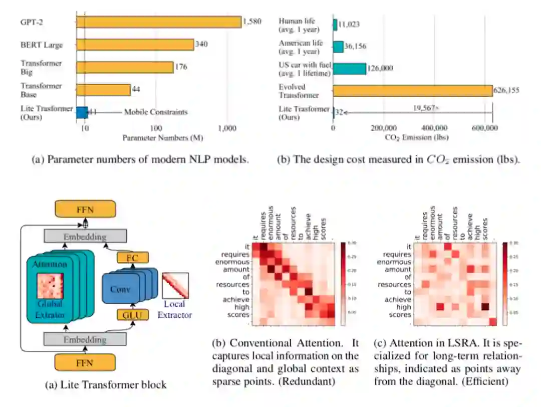 另一个针对解决Transformer模型远程相关性和高资源需求问题的方案是施加“移动约束”。通过对短期相关性使用卷积层,对长期相关性使用经筛选的注意力层,他们构建了一个新的效率更高的Transformer组件LSRA。