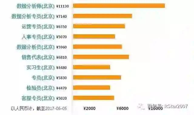 北京数据分析平均工资:¥ 10630/月,取自 15526 份样本,较 2016 年,增长 9.4%。