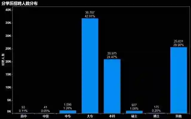 1.学历需求现状:大专最多,本科次之