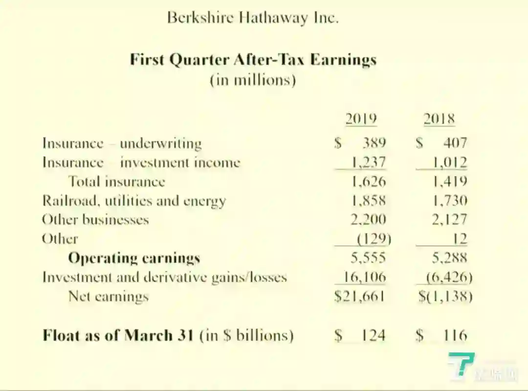 巴菲特还提到,由于卡夫亨氏还没有提交10-K,还没有公布第一季度的收益,因此未计入业绩。