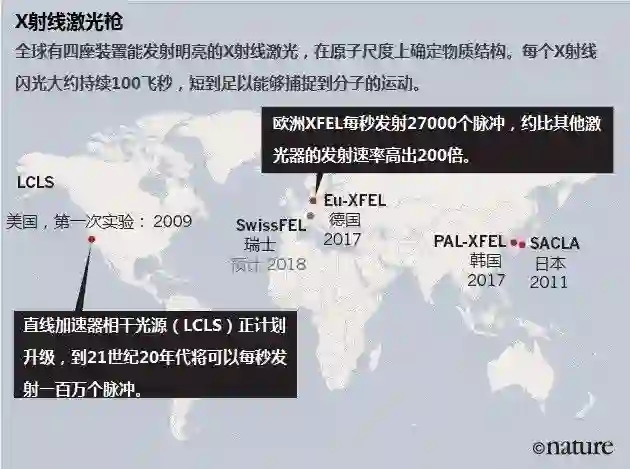 Adrian Mancuso是位于汉堡附近舍内菲尔德的欧洲XFEL实验站的项目科学家,他说科学家们应该能够在1秒钟之内收集3000多张高质量的X射线照片,而其他设施则只能收集100张左右。美国威斯康星大学密尔沃基分校的物理学家Abbas Ourmazd表示:“拥有丰富的数据很重要,欧洲XFEL产生的数据车载斗量。这个由12个国家出资建造的欧洲装置应该会减轻美国和日本较老的X射线自由电子激光器的一些压力(参见“X射线激光枪”)。大批科学家热衷于捕获样品的原子尺度图像,导致它们严重超额预定。6月,位于韩国浦项的一台X射线自由电子激光器对用户开放,瑞士菲利根的一台机器也将于2018年开始实验。