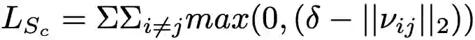 为了避免 Siamese 网络偏向于学习使损失为 0 的情况,其还必须保证每个点至少与潜在空间中的其他点相距 δ,即,因此模型整体的的损失函数如下,对于鉴别器而言其仅优化对抗损失即可。