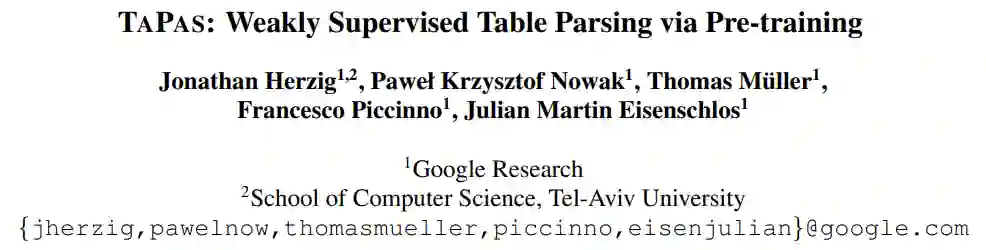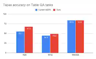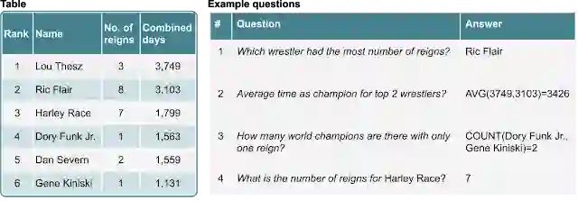 模型示意图:BERT 层同时编码问题和表格。该模型会输出每个聚合操作的概率以及每个表格单元格的选择概率。对于问题「两位顶级摔跤运动员的冠军赛平均时间是多少?」,该模型以较高的概率选择了 AVERAGE 操作以及数值为 3749 和 3103 的两个单元格。 预训练 谷歌采用的预训练过程类似于 BERT 在文本上的训练方法,其训练数据是从英语维基百科提取的 620 万组表格 - 文本数据对。在预训练过程中,模型的学习目标是恢复表格和文本中被掩码替换的词。通过实验发现,该模型在这项任务上的准确度相对较高——对于训练过程中未曾见过的表格,该模型能够正确恢复 71.4% 的被掩盖 token。 仅从答案学习 在微调过程中,模型的目标是学习如何基于表格回答问题。这可以通过强监督方法实现,也可使用弱监督方法。如果使用强监督方法,则对于给定表格和问题,必须先提供所要选择的单元格和聚合操作(比如求和或计数),但这个过程非常耗时耗力。因此更常见的情况是使用弱监督方法进行训练,此时仅需提供正确答案即可(比如对于以上示例,正确答案是 3426)。 在弱监督情况下,模型需要自己尝试寻找能得到接近正确答案的聚合操作和单元格。这个过程需要在所有可能的聚合决策上计算期望,并将其与真实结果进行比较。弱监督方法更加有利,因为它让非专家也能提供训练模型所需的数据,而且消耗的时间也比强监督方法少。 结果 谷歌在 SQA、WikiTableQuestions (WTQ) 和 WikiSQL 这三个数据集上进行了实验验证,并对比了在解析表格数据任务中表现最佳的三种其它方法。其中,在 WikiSQL 上对比的模型为 Min et al (2019),在 WTQ 上对比的模型为 Wang et al. (2019),在 SQA 上对比的模型为 Mueller et al., (2019)(这是谷歌这个团队自己之前的一项研究)。 对于所有数据集,报告的结果都是弱监督训练设置下在测试集上的答案准确度。对于 SQA 和 WikiSQL,谷歌使用了基于维基百科数据得到的预训练模型作为基础模型;而对于 WTQ,他们发现在 SQA 数据上再进行预训练会更有利。谷歌新方法的表现优于之前最佳水平——在 SQA 上超过之前最佳方法 12 个百分点,在 WTQ 上超过之前最佳方法 4 个百分点,在 WikiSQL 上与之前最佳方法表现相近。
