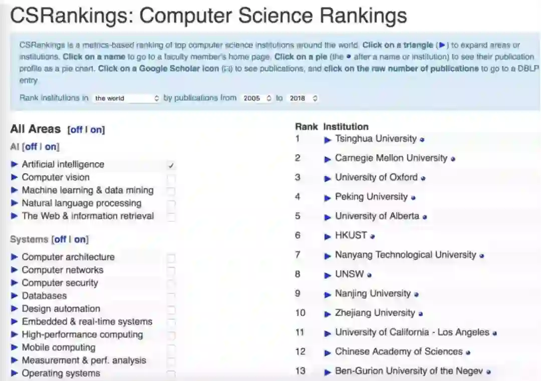 ▌全球高校 Artificial intelligence 排名,清华力压卡内基梅隆
