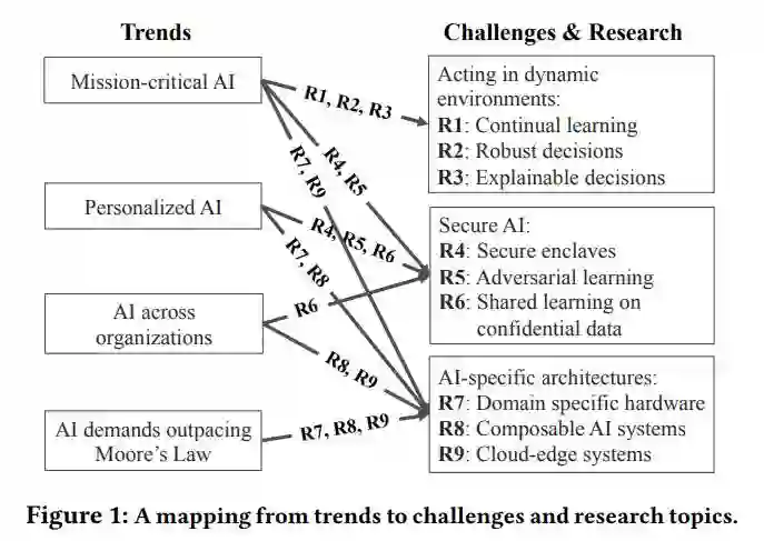 下一代AI系统有望加速这些发展,并通过频繁的交互和代表我们(通常是任务关键型)的决定(通常在高度个性化的环境中)来加速这些发展并对我们的生活产生越来越大的影响。然而,实现这一承诺会带来令人生畏的挑战。特别是,我们需要人工智能系统,能够在不可预测的环境中做出及时、安全的决策,这对复杂的对手来说是强大的,并且可以在不影响机密性的情况下处理越来越多的组织和个人的数据。这些挑战将因摩尔定律的结束而加剧,这将限制这些技术可以存储和处理的数据量。在本文中,我们提出了几个开放的系统,架构和安全研究方向,可以解决这些挑战,并有助于解开AI改善生活和社会的潜力。