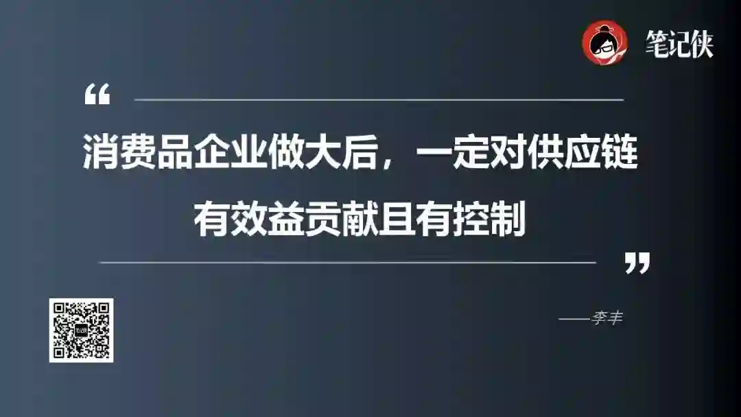 所有的消费品企业在成长为中大型公司以后,它有一个 100% 的历史使命和基因:它必须同时对供应链环节有足够大的控制和足够大的贡献。