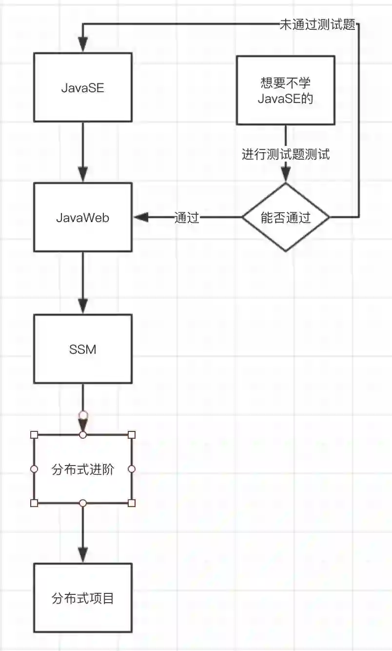 A:想要跨越 JavaSE 阶段,直接进入 JavaWeb 阶段进行学习的小伙伴,需要通过我们的测试题,如果测试题通过,我们认为你的 Java 基础才算基本达标,可以插班学习后续内容。否则为了保证我们的课程质量,只能从JavaSE开始学,不能插班了哦。