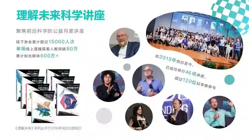 据悉,理解未来科学讲座由未来论坛举办,是面向大众开放的公益科学讲座,每月一期,邀请有洞察力和前瞻性的创新科学家担任主讲嘉宾,并与相关行业知名人士及企业家跨界对话,以传播科学精神、启蒙科学思想。理解未来讲座形式不断创新,内容覆盖生命科学、医疗、材料科学、社会科学、量子物理、化学、数学、人文、科技等领域。