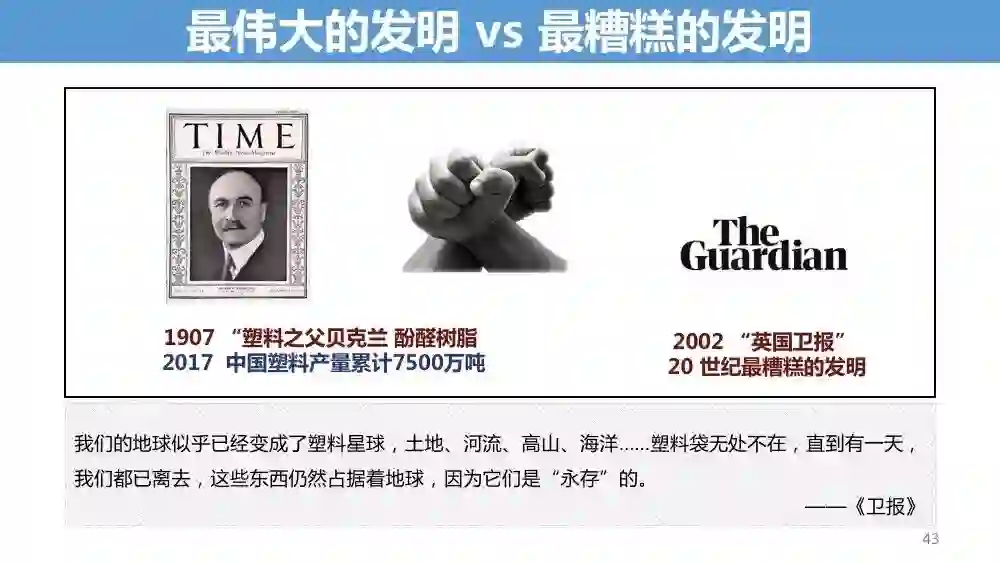 “塑料应用于各行各业,这是不可避免的。既然不可避免,我们应该想想有什么是可以避免的。”