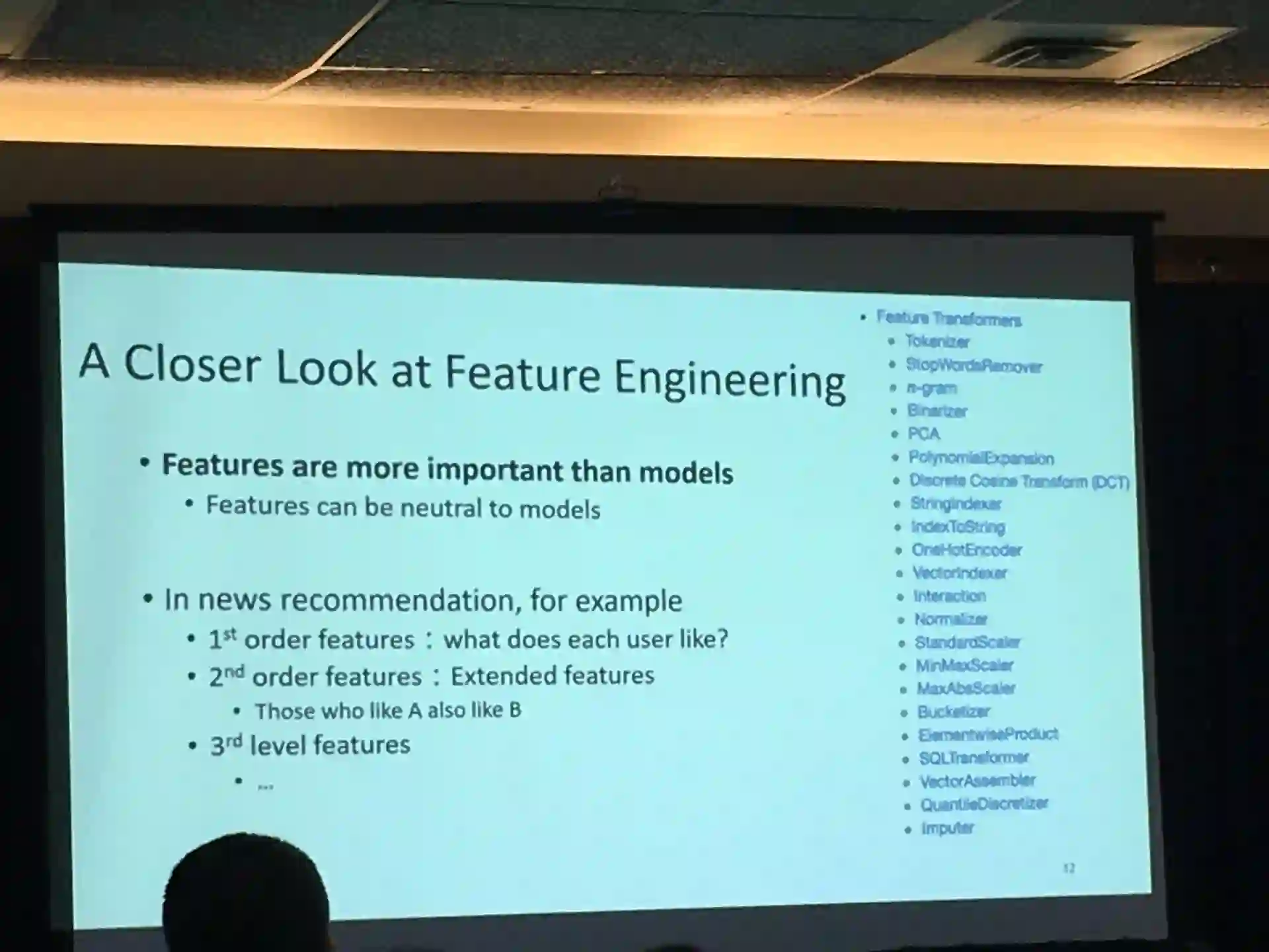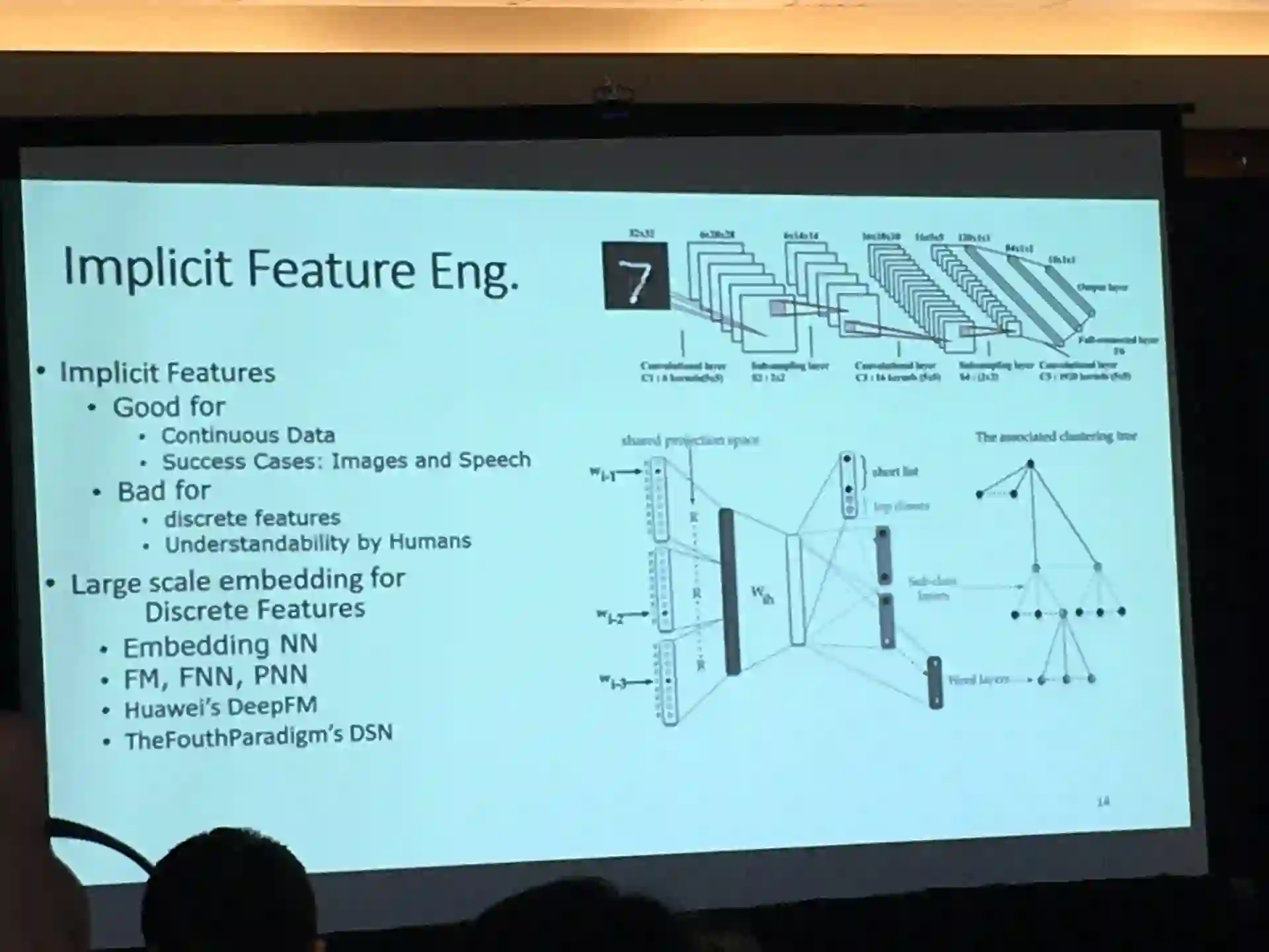 在讲座中,他也介绍了特征工程的用处,三个分类以及各自的优缺点,以及特征工程如何帮助实现迁移学习。