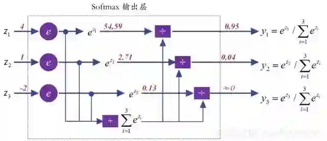 图12-10 Softmax输出层示意图(绘图参考了台湾大学李宏毅博士的工作)