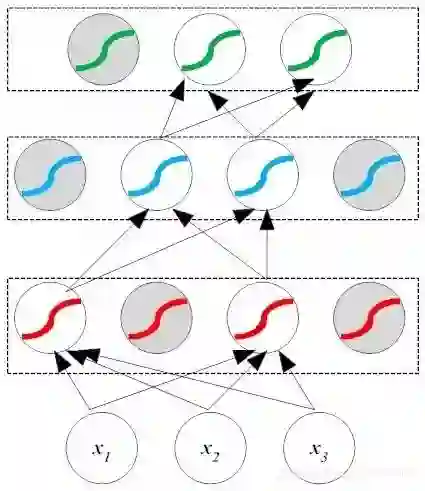 这个细小的变化,让ReLU在实际应用中大放异彩,除了减少了计算量,还减少了参数的相互依存关系(网络瘦身了不少),使其收敛速度远远快于其他激活函数,最后还在一定程度上缓解了过拟合问题的发生(对Dropout机制比较熟悉的读者可能会发现,图12-5和Dropout的迭代过程何其神似!)。ReLU的卓越表现,让深度学习的三位大咖Yann LeCun、Yoshua Bengio和Geoffery Hinton在2015年表示,ReLU是深度学习领域最受欢迎的激活函数。