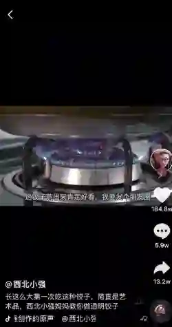 「西北小强」拍摄了妈妈做透明饺子的过程,他形容这种饺子为“艺术品”,该视频一天新增播放3778万,获赞184.8万。