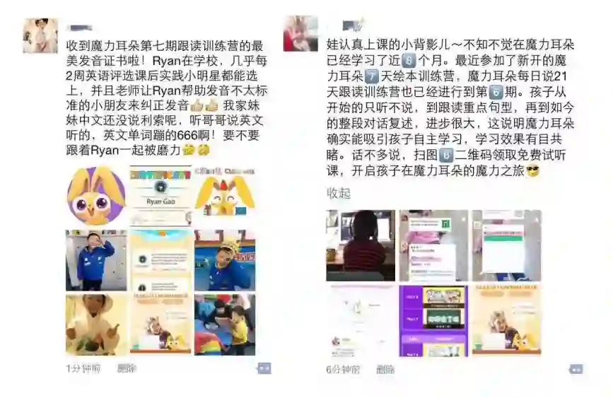我女儿参加了21天的跟读训练营,小朋友们有自己的群,每天打卡。