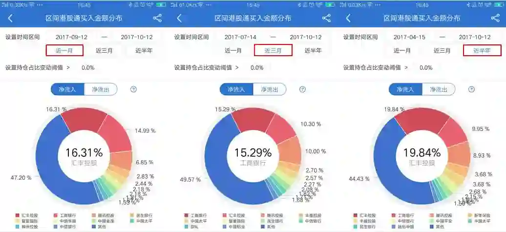 从下图中可以看出,港股通资金在1个月内、3个月内或是半年内净流入最多的始终都是金融、地产和科技股。