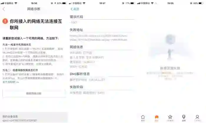而其它的大应用如微信、手淘、支付宝、钉钉、美团、点评、爱奇艺、百度地图等则都没有给出认证提醒,而是提示我检查网络设置等,说明许多App都没重视到这个细节,而其实现在这种场景还是很多的,比如花生地铁WIFI、i-Shanghai、i-hangzhou、alibaba-guest和其它许多公共场所的WIFI,还是有必要做一个优化~