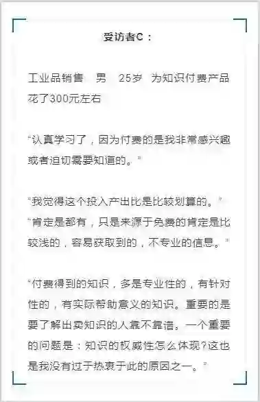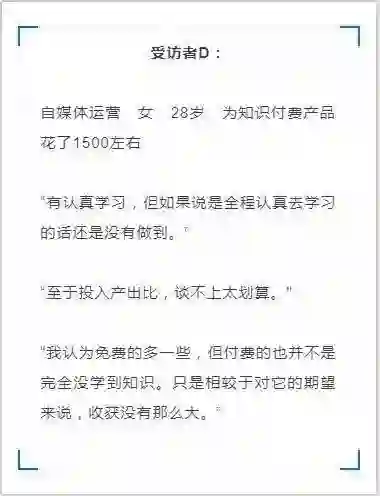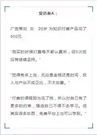 从几位采访者的表述来看,他们普遍认为,知识付费是一个学习的好机会,抛开结果,付费本身会对学习产生一种约束力。
