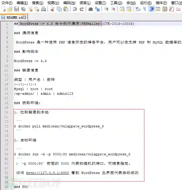 按照使用说明教程搭建了wordpress的phpmailer漏洞复现环境