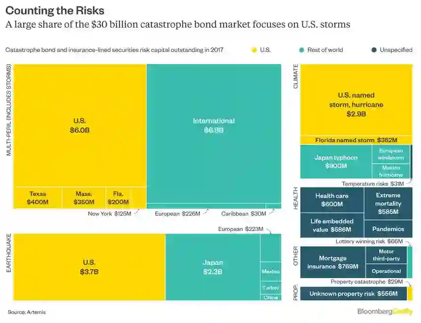 与美国风暴相关的巨灾债券在总规模为300亿美元的巨灾债券市场中占比显著