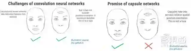 尽管卷积神经网络(CNN)在很多方面取得了成就,但很多时候,CNN表现不佳,存在可能的安全漏洞,不能处理输入数据的多种变换形式(翻译一下,就是很容易出错,很容易被黑客愚弄);而胶囊网络可以从更高维度的特征中识别事物,且所需训练数据更少,错误率更小。