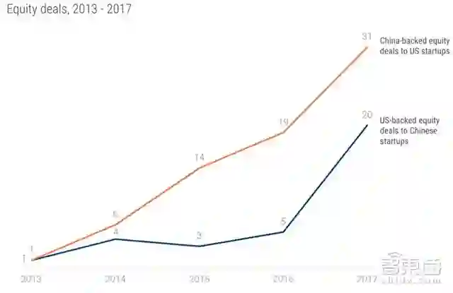 尽管全球AI创企交易宗数来看,中国只占9%的份额;2017年的创企融资金额,有近一半(48%)流向中国创企,首次超过美国(38%),而中国这一数据在2016年仅为11.3%。