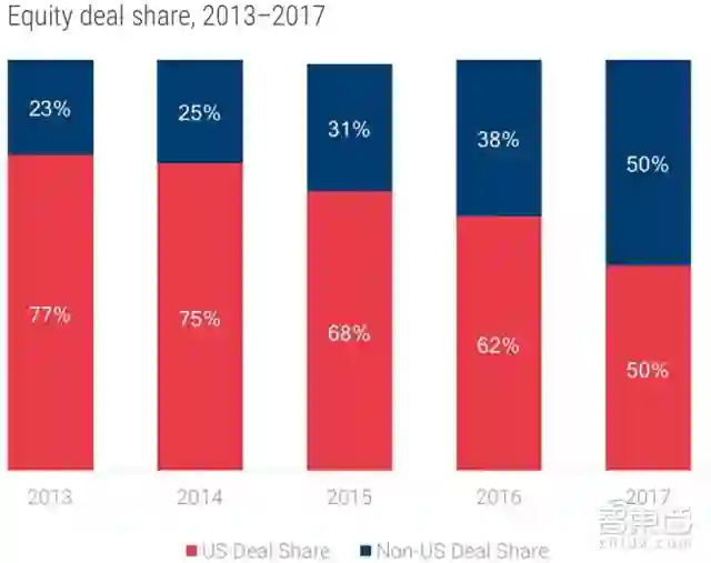 从人工智能初创企业的数量来看,美国在全球仍占据着主导地位,但其全球交易份额正逐渐减少。老美虽底蕴丰厚,但中国数据和应用需求巨大,未必不可一搏。