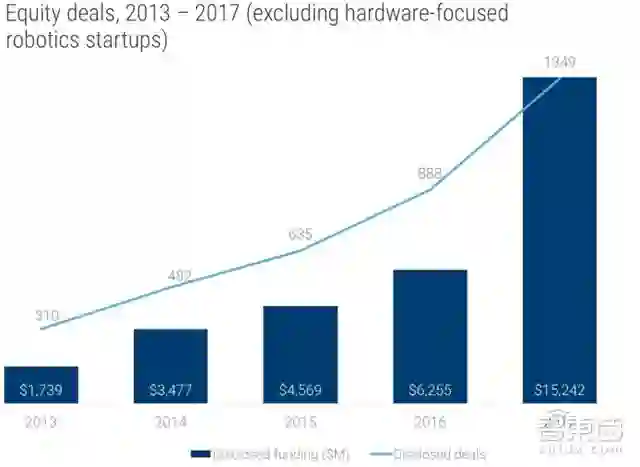 毕马威数据显示,过去一年中,人工智能领域的风投融资额翻了一番,从2016年60亿美元增至120亿美元,覆盖自动化、金融、机械、医疗等诸多领域。