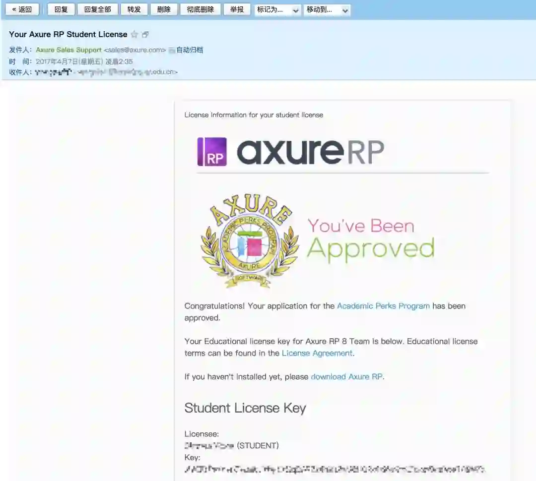 通过认证后,Axure 团队就会给你发送相关授权邮件,你可以在 Axure 官网 下载试用版,再根据提示输入授权码激活就可以了。