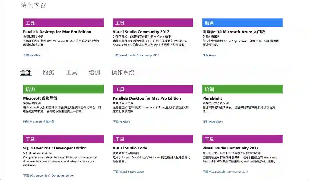 Microsoft Imagine 原名 Dreamspark,是微软公司为学生开发人员提供的免费扶持计划,包含 Azure 云服务、Visual Studio Community、SQL Server、Windows Server 等专业软件和服务授权以及 Microsoft 虚拟学院和 Imagine Cup 等专业培训计划,极为诱人。