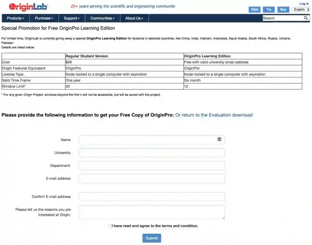 此外,国内也有不少高校购买了 Origin Pro 的正版授权供在校师生免费使用,你可以询问学校相关人员获知详细信息。