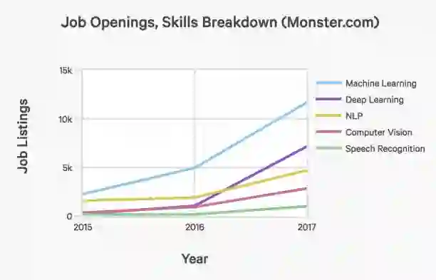 Monster平台上,按具体要求的技能细分,给定年份人工智能职位空缺的总数量: