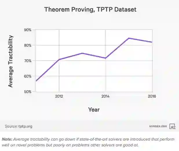 自动定理证明指的是一大组定理证明问题的平均易处理性。 “可追踪性”用来测量可以解决问题中最先进的自动定理证明器的一部分。