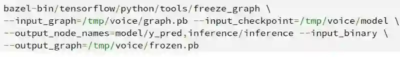 这就在 /tmp/voice/frozen.pb 文件中创建了一个简化图,其中只包含到 y_pred 和 inference 的所有结点,它不包括用于训练的结点。
