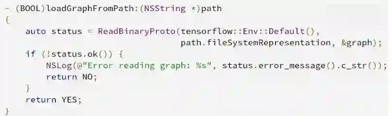在这个演示的应用程序中,这一切都在 ViewController.mm 文件中完成。首先,让我们加载计算图: