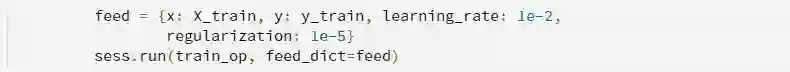 这条命令并不那么简洁,我们创建了 feed_dict,结点矢量,以及保存结果的一个矢量。最后,我们告诉会话来做我们想做的事情。