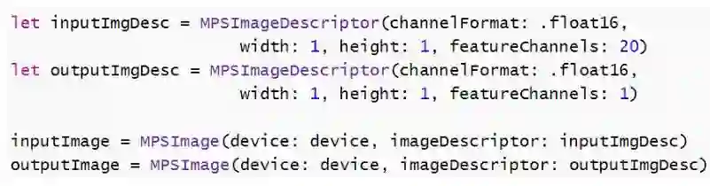 输入和输出数据被储存在(与它们维度相同的)MPSImage 对象中。