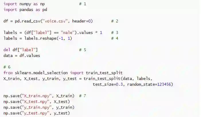 还有一个输入 y。这用于训练分类器并验证其有效性。我们使用的数据集有 3,168 个录音样本,每个样本我们也知道是男声还是女声。那些已知的结果(男性或女性)也被称为数据集的标签(label),而这就是我们将放在 y 中的。