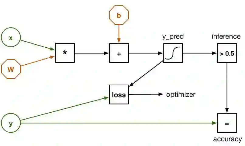 要在 TensorFlow 中使用该分类器,我们首先需要将其设计转换为计算图(computational graph)。计算图由执行计算的节点和在这些节点之间流动的数据组成。