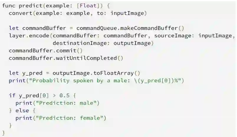让我们看看我们 logistic 回归的 Metal 版本。你可以在源代码的 VoiceMetal 文件夹中找到这个 Xcode 项目,它是用 Swift 语言写的。